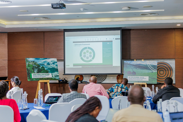 During the consultations, GGGI unveiled a conceptual framework of the Gender Equality and Social Inclusion Index Simulation Tool. Participants shared reflections and assessed the tool’s relevance and identified capacity needs for gender-responsive climate action in Rwanda’s NDC 3.0. ©GGGI Rwanda