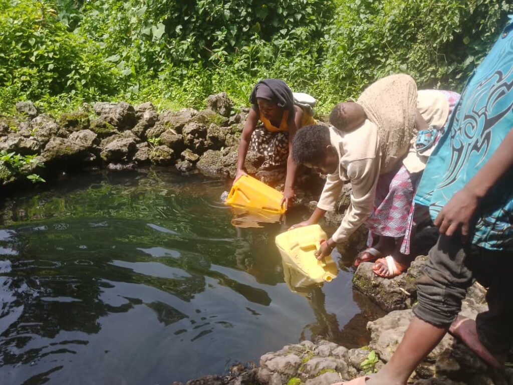 Abaturage bavoma amazi mu iriba rya Nkotsi na Bikara